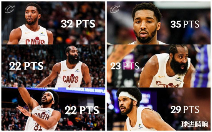 赛后骑士队也晒出哈登加盟以来,过去两场骑士队三大核心的数据表现,米切尔连续砍下30+,哈登与阿伦连续交出20+表现。