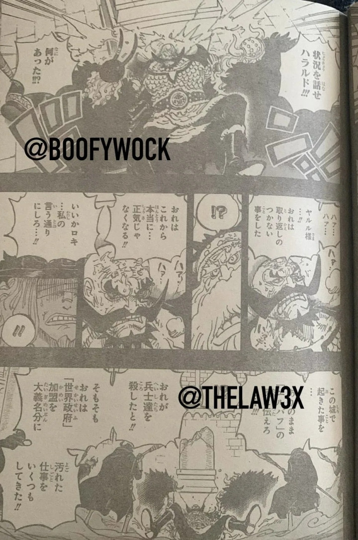 哈拉尔德国王哭着告诉大家,他被世界政府欺骗了,自己被伊姆大人操控,只有洛基王子才能杀死自己。哈拉尔德国王让洛基王子吃下恶魔果实和拿下铁雷,洛基王子马上逃跑,他来到宝库前面,里面就是巨人族供奉的传说中的恶魔果实。
